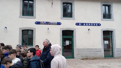 Le lundi 23 février dernier, les élèves de 3° du collège Pierre Delarbre de Vernoux en Vivarais se sont rendus à l’ancienne gare de St Agrève dans le cadre du projet ‘l’ici et l’ailleurs - l’insolite’. Ils ont été accueillis sur place par Mr Villemagne, maire de la commune et madame Vareille. Ils ont également rencontré leurs camarades de 6° du collège de St Agrève avec qui ils ont partagé un temps de travail. En effet, après avoir écouté les explications données au sujet de la réhabilitation de cette ancienne gare, tous les élèves ont pu avoir accès à l’un des trois gîtes, situé au dessus du bâtiment, et ils ont visité le fameux wagon (suisse!) converti en habitat insolite. Un wagon très atypique destiné à accueillir des touristes sur une courte durée.