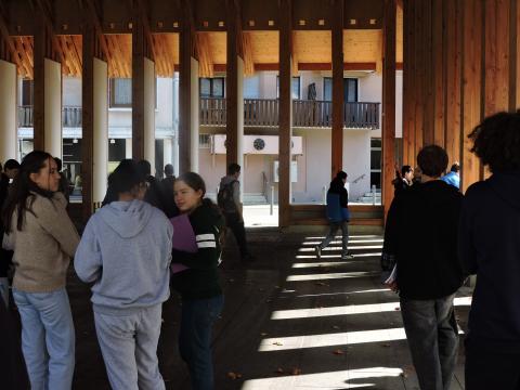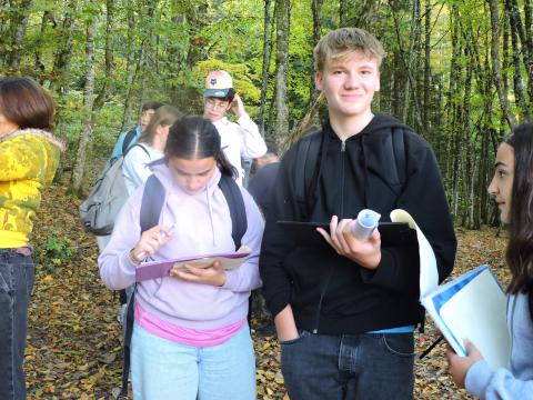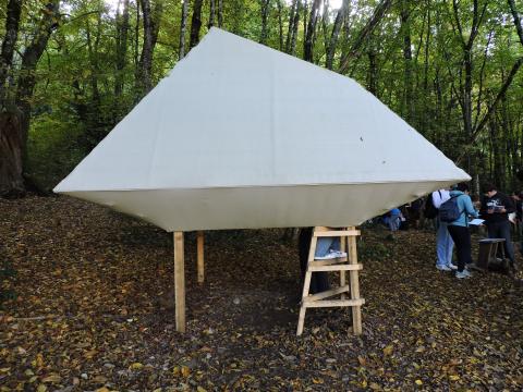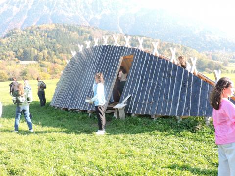 Depuis quelques semaines, les élèves subissent un vrai bain linguistique dans les langues vivantes étudiées autour du thème de l’habitat insolite avec madame Dizet pour l’italien, madame Goiny pour l’espagnol et madame Rigollier pour l’anglais. Le 6 octobre dernier, ils se sont rendu à pied sur la commune de Boffres où ils sont allés voir une yourte, ce qui les a amenés à comprendre le fonctionnement d’une structure autoportée avec monsieur Beroud, professeur de technologie. A l’aide de perches de châtaigniers, ils se sont essayés au montage en pleine nature d’une telle structure.