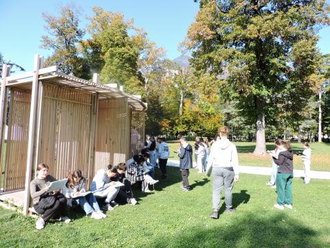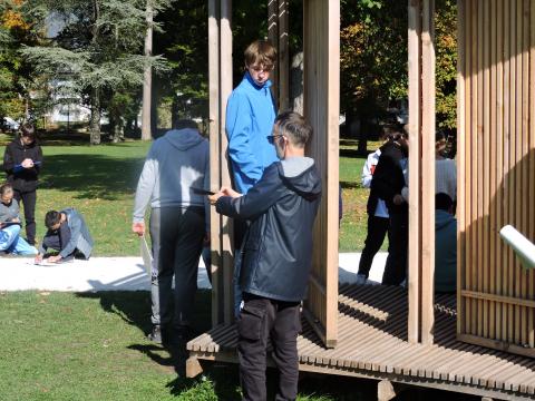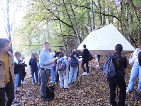 Le 16 octobre, ils sont partis en bus à la découverte des cabanes du ‘festival des cabanes’ à Faverges, en Haute Savoie. Là , ils ont d’abord découvert de magnifiques paysages aux couleurs automnales et un soleil radieux qui les ont accompagnés à la découverte d’œuvres d’art éphémères cachées ici au bord d’une rivière ou bien là en plein centre-ville u bien encore nichées au beau milieu d’un pré verdoyant. Ces constructions sont celles de jeunes architectes ayant participé à un festival de l’architecture. Les professeurs espèrent que les élèves auront trouvé une grande source d’inspiration au cours de cette visite, car désormais, c’est eux qui, avec leur professeure d’art plastique, madame Jouty, fabriqueront leurs propres maquettes de cabanes avec l’aide également de la ressourcerie locale pour utiliser des matériaux recyclés. De plus, ils participeront à un concours intitulé ‘super cabanes’ pour lequel interviendra également monsieur Marciliac, professeur de français. Tout est mis entre leurs mains pour qu’ils gagnent ce concours !