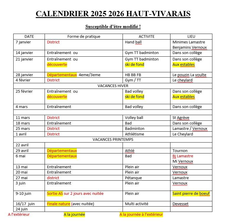Voici le calendrier de l'As pour la fin de l'année. IL est suscpetible d'être modifiée en fonction de la météo, de contraintes du calendrier unss... Si vous avez des questions, n'hésitez pas à venir nous les poser !